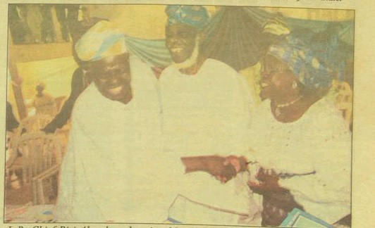 I should also show appreciation to the Governor of Osun State, Prince Olagunsoye Oyinlola and his wife Omolola together with the Deputy Governor, Erelu Obada; the Speaker of the House of Assembly, Hon Adejare Bello and the Secretary to the Government, Alhaji Fatai Akinbade who accompanied the Governor of Osun state to me at Ila-Orangun and to Hon. Justice Bola Babalakin. Also to the Orangun of lla, Oba Wahab Oyedotun and his Chiefs; the Orangun of Oke-lla; Akesin of Ora; all Omo Tiimo of Isedo, Ila Orangun and Obinrin Ile Obalumo; my in-laws the Akintolas, the Iloris, the Okunades, and the ljoses; Chairmen of lla and Ifedayo Local Governments.